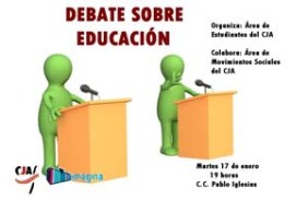 El Área de Estudiantes del Consejo de la Juventud de Alcobendas organiza un debate sobre educación para el próximo martes 17 de enero  a las 19.00h en el salón de actos del C.C. Pablo Iglesias.