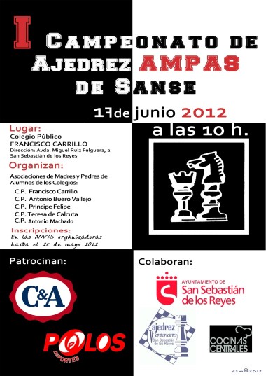 Para permitir que sea mayor el número de participantes, el I CAMPEONATO DE AJEDREZ AMPAS DE SANSE se celebrará el próximo día 17 de Junio en lugar del 3 de junio que os adelantábamos en este artículo, en el que podéis recabar más información sobre el mismo.