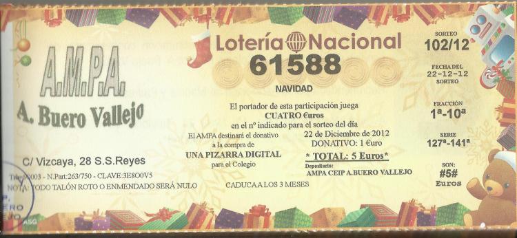 Ya está a la venta la lotería de nuestra AMPA, para el sorteo extraordinario de Navidad.