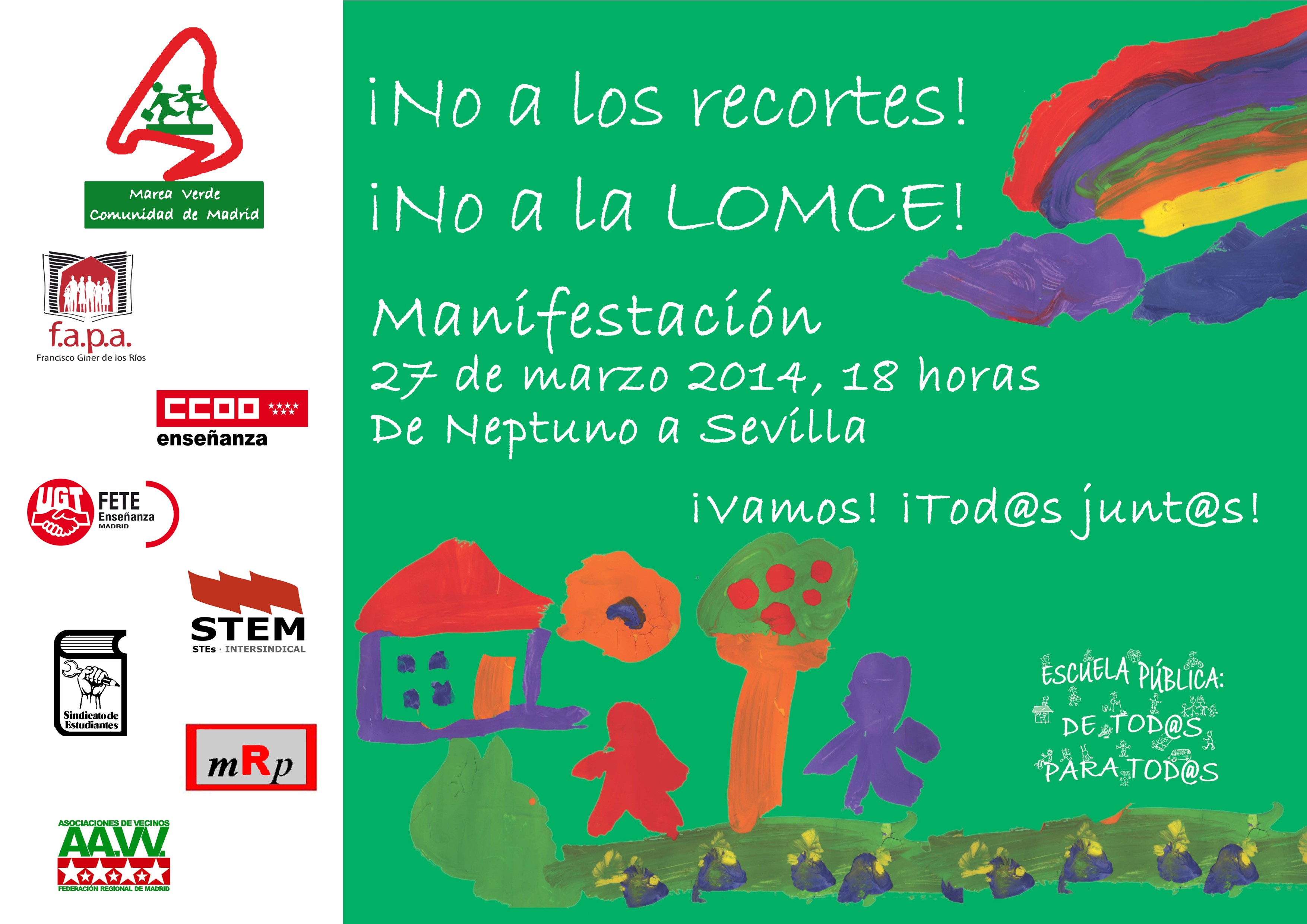 Desde la Plataforma regional por la Educación Pública se convoca una manifestación este próximo jueves 27 de Marzo.