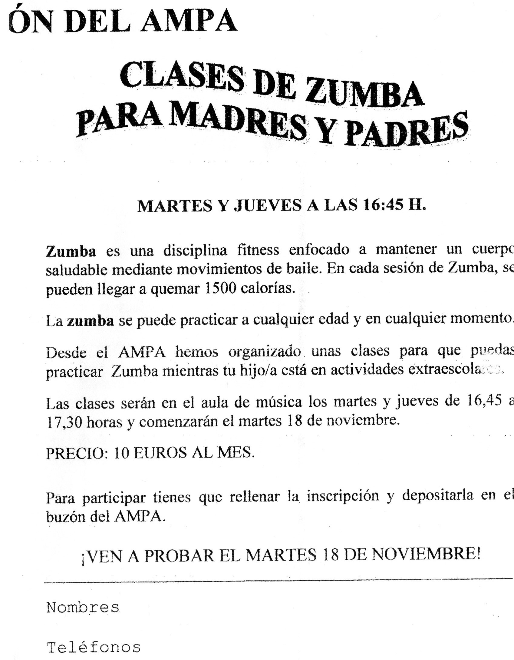 Desde el AMPA hemos organizado unas clases para que puedas practicar Zumba mientras tu hijo/a está en actividades extraescolares.