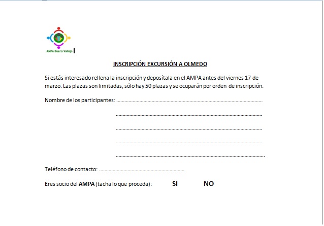 La hoja de inscripción (pinchar aqui), rellenar y entregar en el AMPA o depositar en el buzón. Plazas limitadas (50)