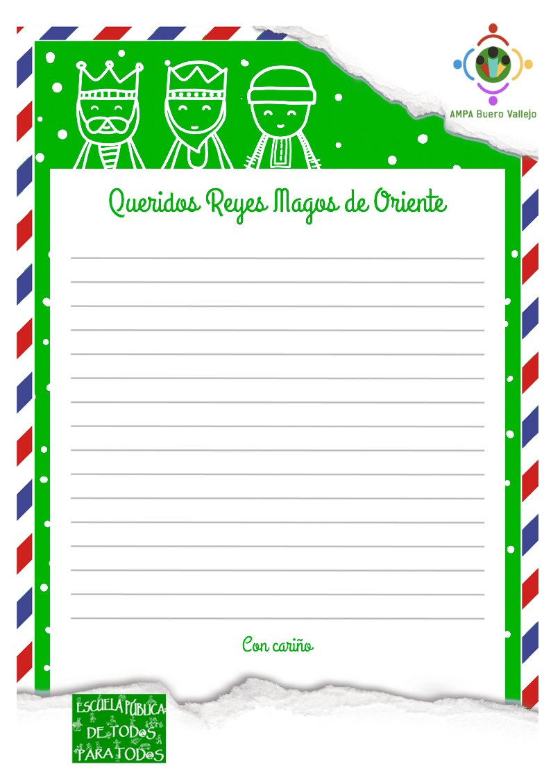 Sus Majestades admiten cualquier formato de carta pero, por si os sirve de ayuda, el AMPA os suministra un modelo que podéis rellenar con todos vuestros deseos.