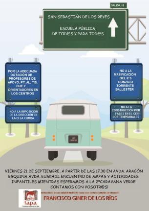 Centrándonos en nuestro municipio, se llevarán a cabo dos acciones concretas. Por una parte, la tarde del viernes 21 de Septiembre de 17:30 a 20:30h, tendrá lugar un encuentro lúdico de AMPAs municipales en el Parque Infantil situado en la Avd. Aragón, esquina con la Avda. de Euskadi (al lado de la pista de hockey) en el que también se desarrollarán actividades y talleres infantiles impartidos por monitores. Este encuentro es una buena oportunidad para aproximarnos, para hacer una valoración del comienzo del curso y para poner sobre la mesa aquellas cuestiones que nos afectan y preocupan.