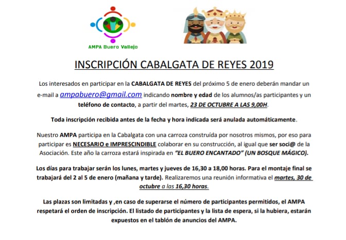 INSCRIPCIÓN CABALGATA DE REYES 2019