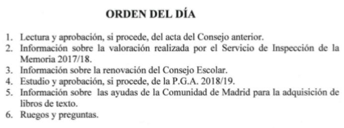 El pasado 25 de octubre se celebró Consejo Escolar con el siguiente orden del día:
