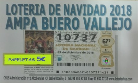 YA TENEMOS A LA VENTA LA LOTERÍA DE NAVIDAD DEL AMPA, EN LA QUE JUGAREMOS CON EL NÚMERO 10.737