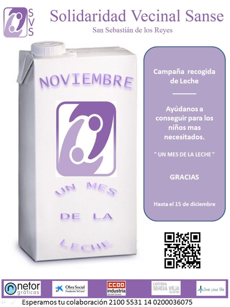 En esta ocasión, colaboramos con SVS (Solidaridad Vecinal Sanse) en la campaña de recogida de Leche para los niños/as más necesitados/as de Sanse.