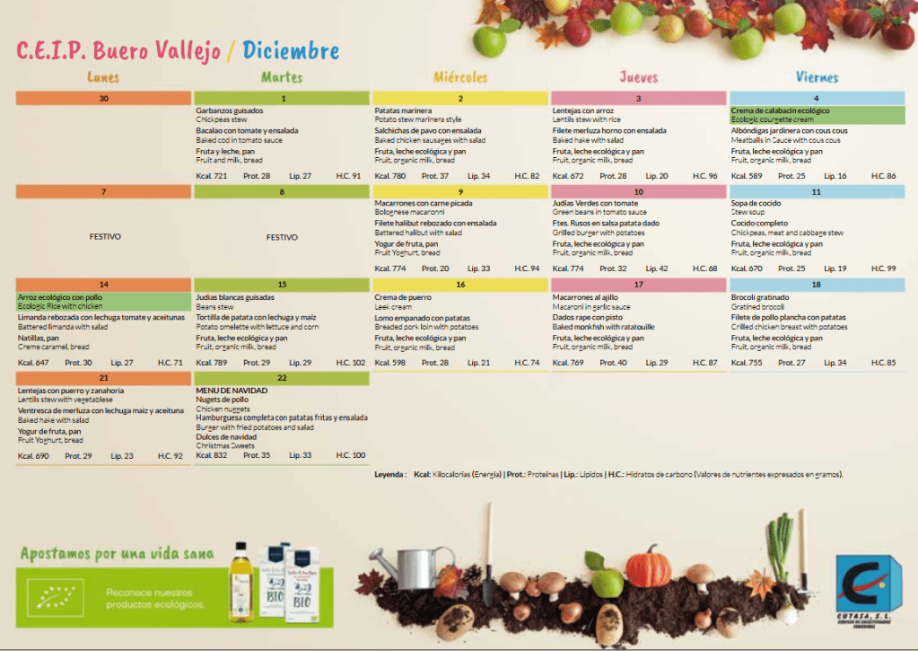 Abajo están los enlaces para los menús del comedor de diciembre de 2020.
