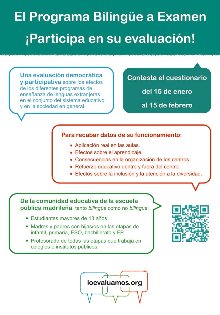 Desde la puesta en marcha del Programa Bilingüe de la Comunidad de Madrid (PBCM) en 2004, diferentes asociaciones, organizaciones y sindicatos hemos reclamado una evaluación rigurosa por parte de la Consejería de Educación.