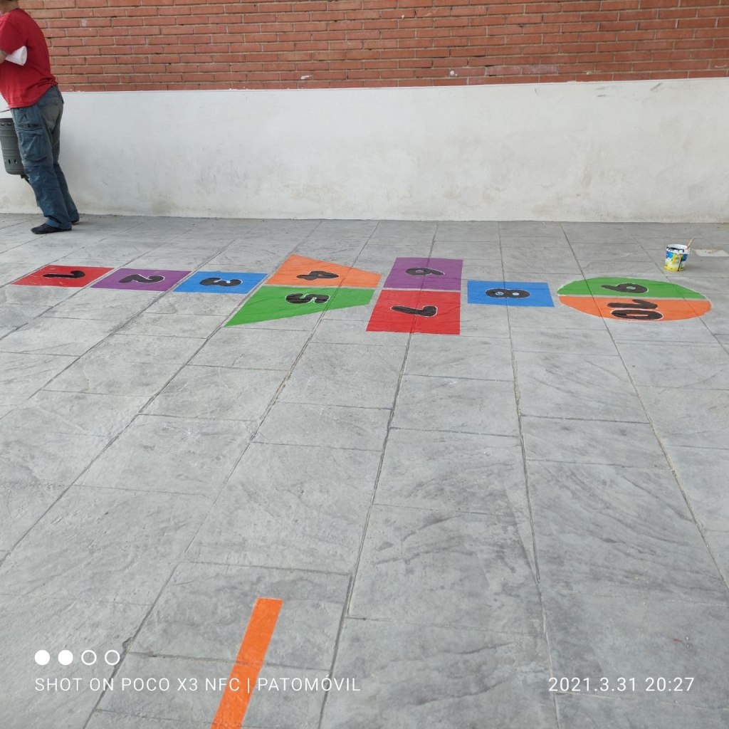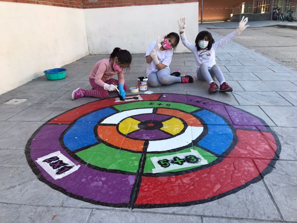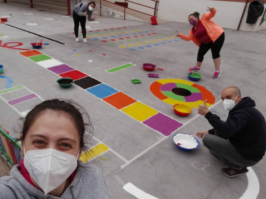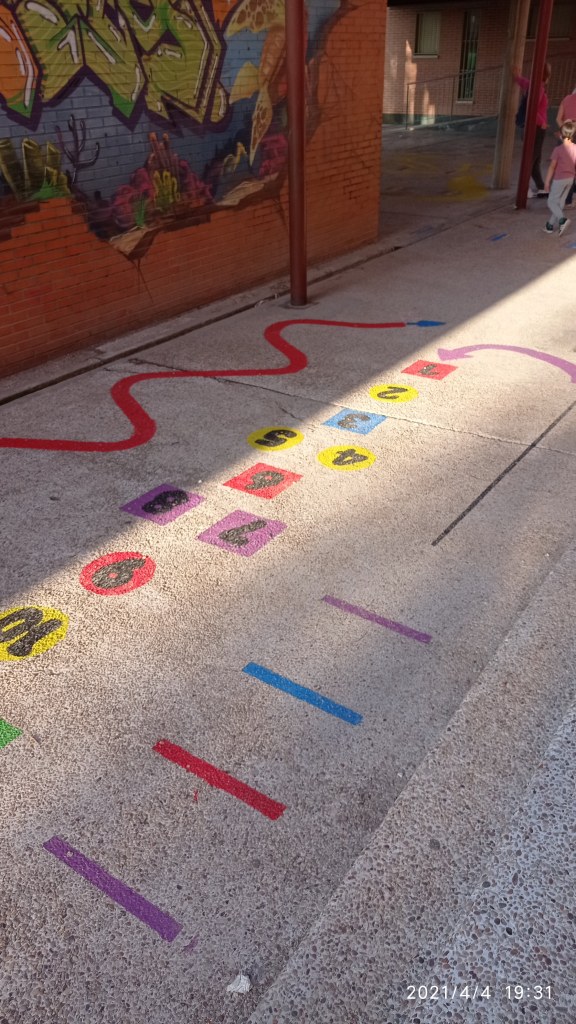 Muchas muchas gracias a todas las personas que nos han estado ayudando a pintar juegos en los patios del colegio durante la Semana Santa.