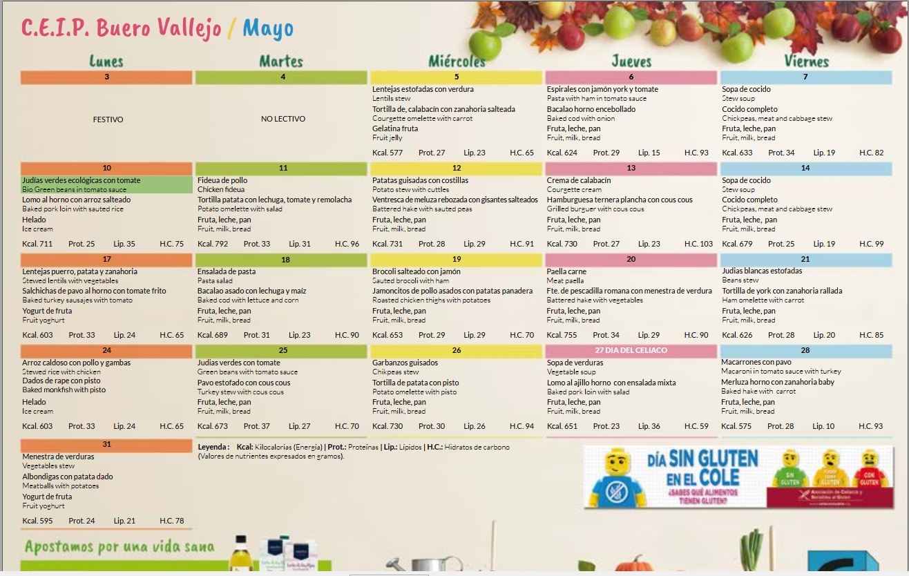 Abajo están los enlaces para los menús del comedor de mayo de 2021.