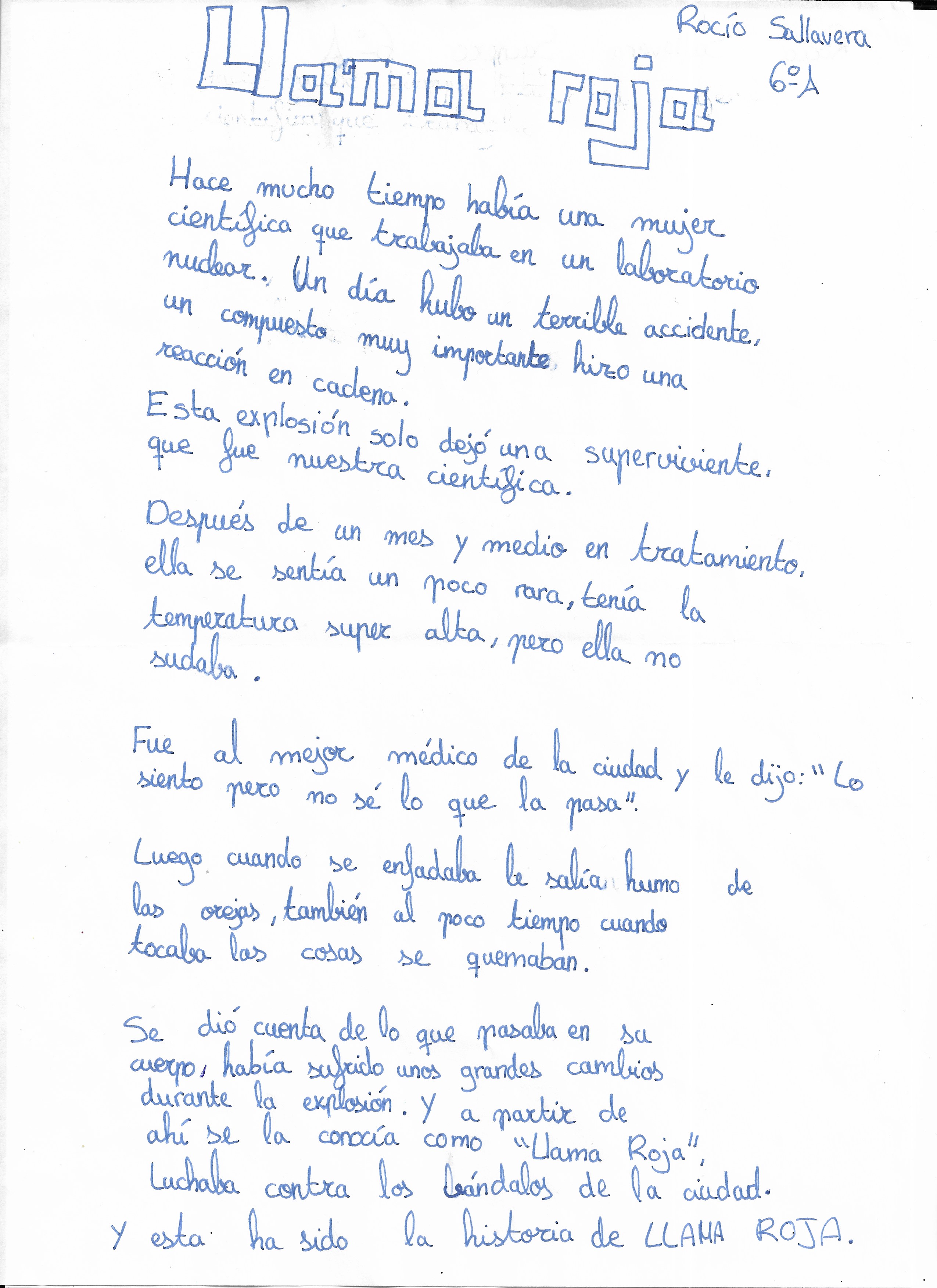 Rocío – 6º A – Ganadora con el relato ‘Llama Roja’