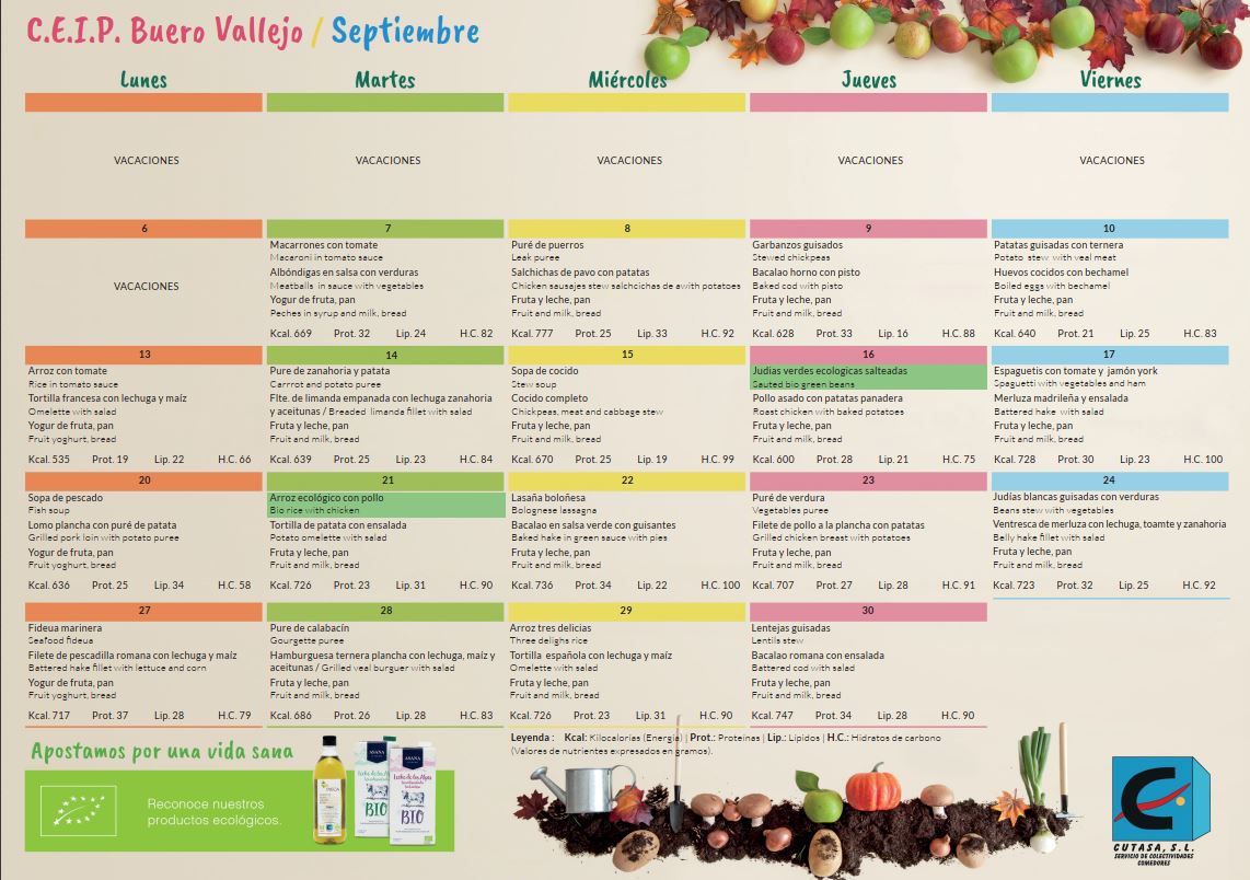 Abajo están los enlaces para los menús del comedor de septiembre de 2021.