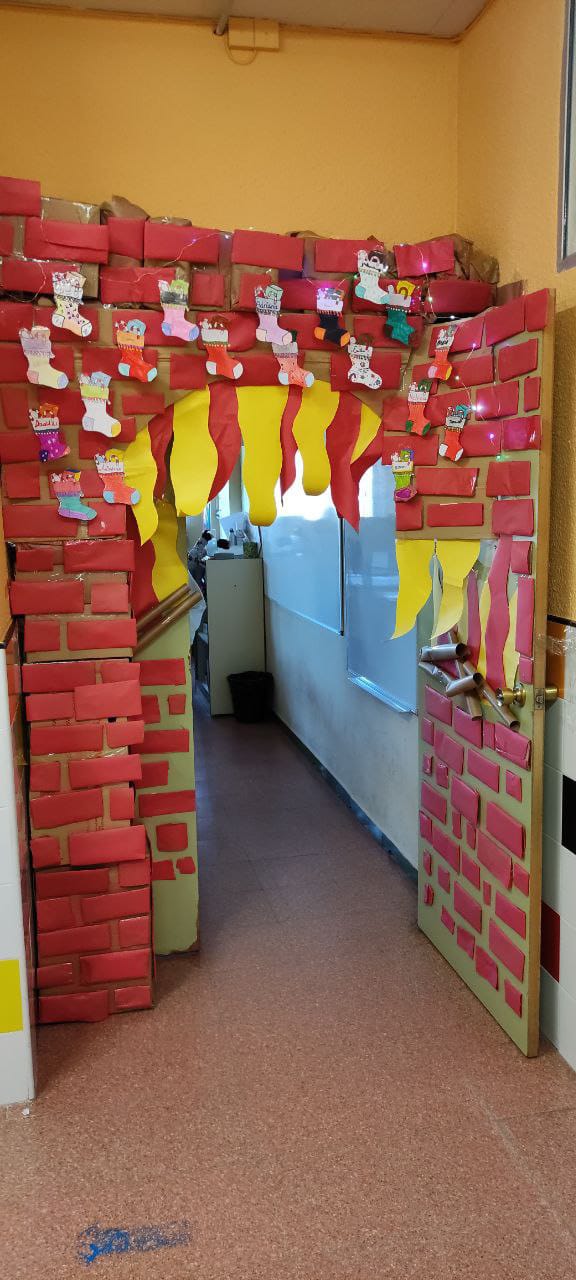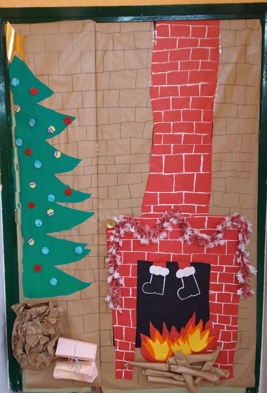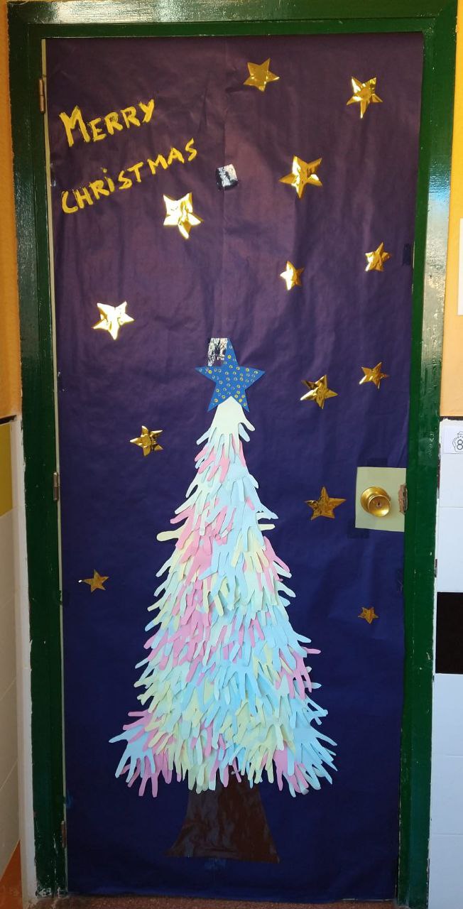 Cada clase ha decorado la puerta de su aula, como podemos ver y disfrutar en las felicitaciones de FELICES FIESTAS del colegio.