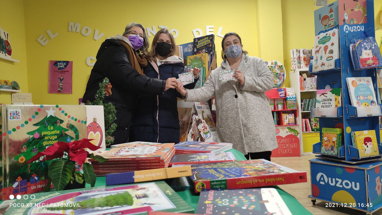 Miembros de la AMPA recogiendo los premios en la tienda El Movimiento del Caracol.