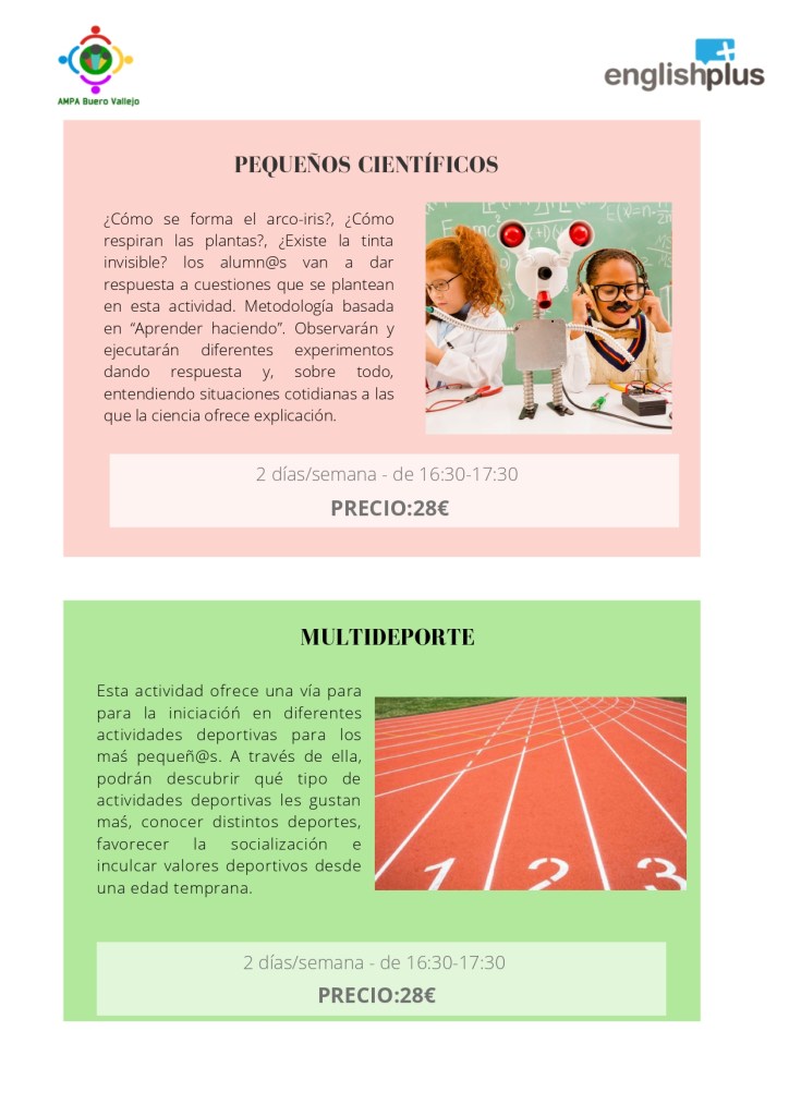 Desde la AMPA Antonio Buero Vallejo os comunicamos la decisión de cambiar de empresa para la gestión de las actividades extraescolares y los cambios que se han producido en otras actividades que ya desde el año pasado son gestionas directamente por los clubes deportivos.