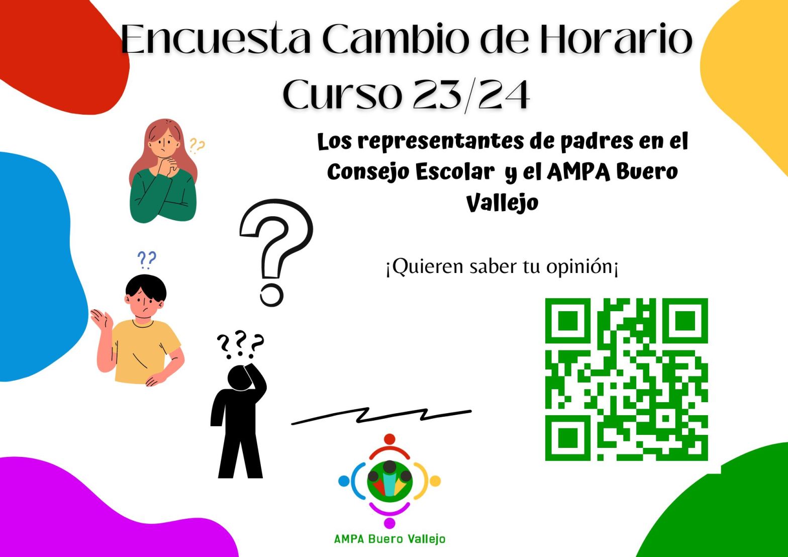 Queridas familias, Desde la AMPA Buero Vallejo, junto con los padres/madres representantes de las familias en el Consejo Escolar, os informamos de lo siguiente en relación a la votación sobre la modificación del horario del colegio, celebrada en la Reunión del Consejo Escolar que tuvo lugar el 24 de Enero. La encuesta que se facilitóSigue leyendo «COMUNICADO: Cambio de Horario Curso 23/24»