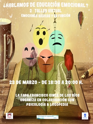 La FAPA Francisco Giner de los Ríos (de la cual nuestra AMPA es miembro) organiza una nueva jornada de formación online el próximo 26 de marzo, de 18:30/20:00 horas, bajo el nombre “II Taller de Educación Emocional”. Se abordarán lo que son las emociones básicas y su función. Todas las actividades dentro del proyecto «CosasSigue leyendo «Jornada de formación FAPA: “II Taller de Educación Emocional”»
