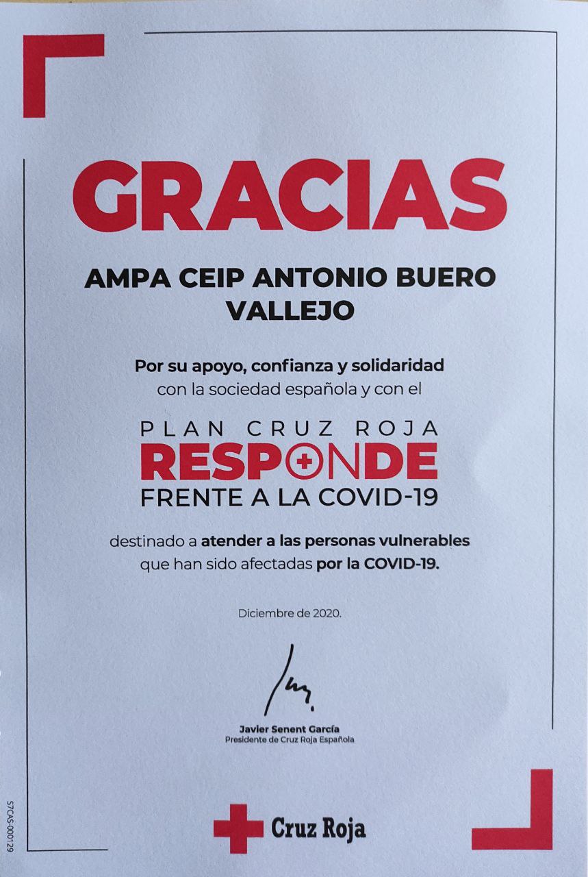 Gracias de Cruz Roja a AMPA Buero Vallejo